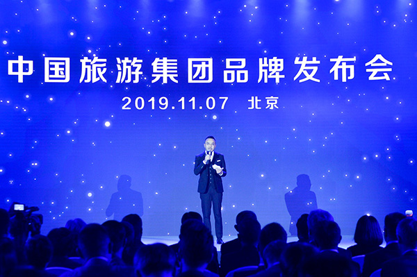 Famous TV host Wang Han hosts a press conference to introduce China Tourism Group’s new brand logo and slogan, Nov 7, 2019.[Photo provided to chinadaily.com.cn]