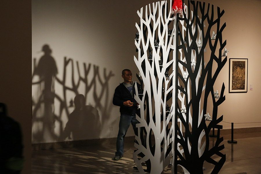Exhibition "Fusion" celebrates Macao's multi-dimensional development in art and marks the 20th anniversary of China resuming sovereignty over Macao in December 1999. [Photo by Jiang Dong/China Daily]