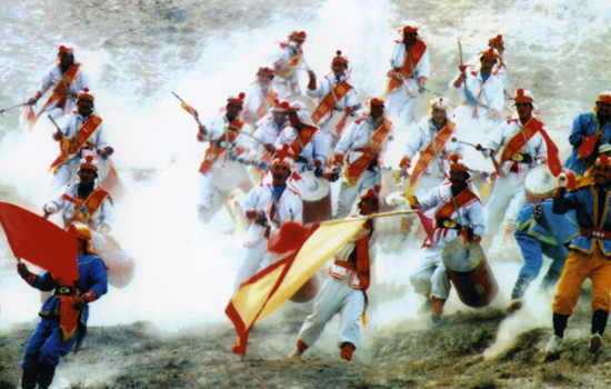 Carrying an auspicious meaning, this dance is loved by local people. Reputed as "China's Top Drum Dance", Lanzhou Taiping Drum dance is among the "Chinese Five Drums", along with Ansai Waist Drum, Weifeng Gongs and Drums, Kaifeng Drum, and Fengyang Flower Drum.