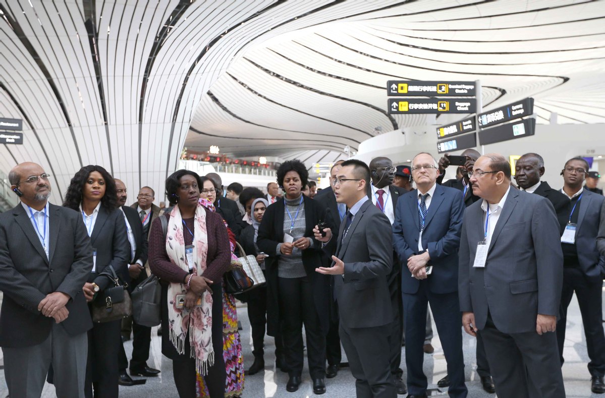 Foreign ambassadors and representatives visit Beijing Daxing International Airport on Nov 12, 2019. [Photo by Zou Hong/ chinadaily.com.cn]