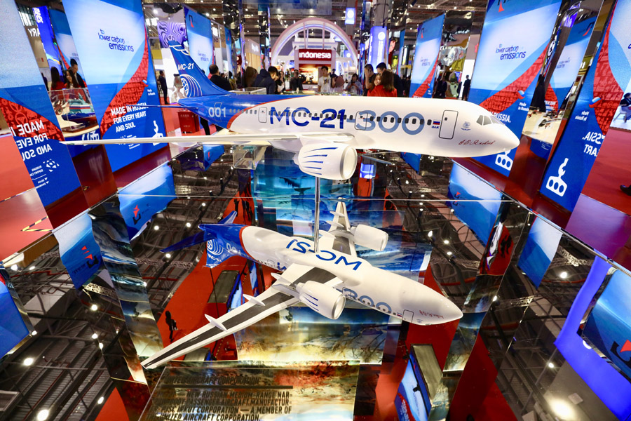 An airplane model at the Russia Pavilion during the second China International Import Expo in Shanghai on Nov 6, 2019. [Photo by Zhu Xingxin/chinadaily.com.cn]