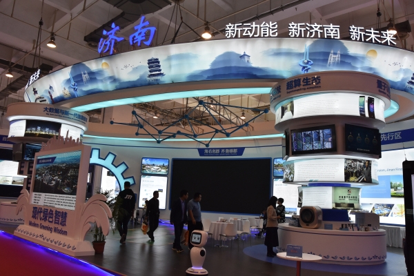 Jinan booth displays a wide range of cutting-edging intelligent products at the Qingdao fair from Oct 19 to 21. [Photo provided to chinadaily.com.cn]