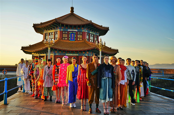 Models walk along the ancient trestle to showcase fashion designs by artists from around the world. [Photo provided to chinadaily.com.cn]