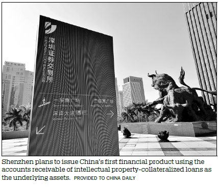 As one of China's pilots of IP securitization, Shenzhen in Guangdong province will issue the first product of this kind in the Shenzhen Stock Exchange soon, said Song Yang, deputy director of the IP promotion department of the city's administration of market regulation.