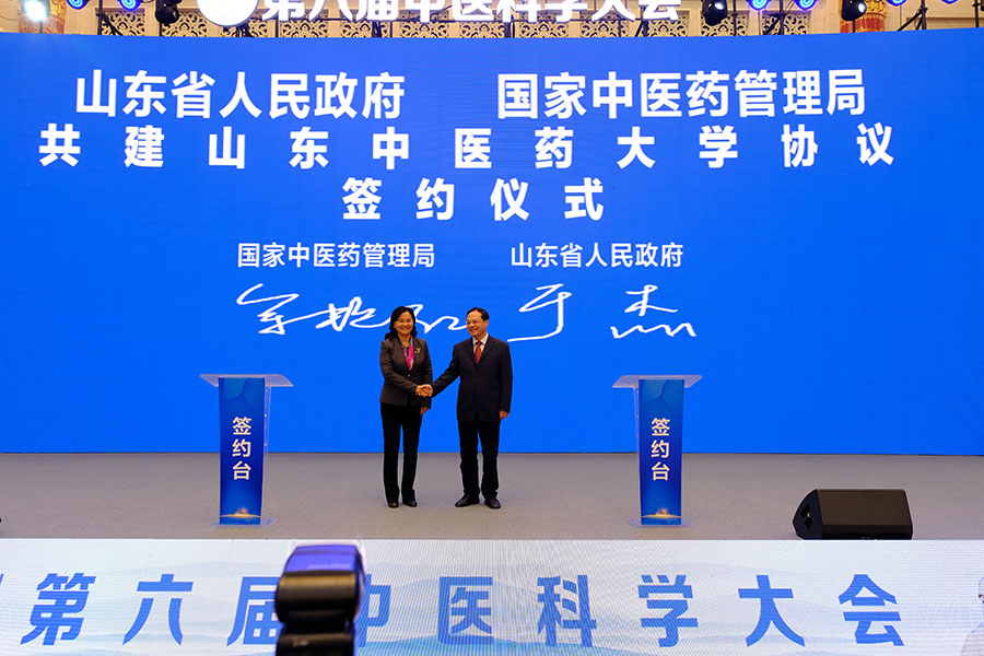 During the conference, Shandong provincial government and the National Administration of Traditional Chinese Medicine signed an agreement to jointly develop Shandong University of Traditional Chinese Medicine.