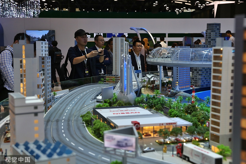 People check out miniature models at the 17th Guangzhou International Automobile Exhibition in Guangzhou, South China's Guangdong province. [Photo/VCG]