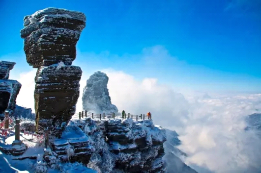 A sea of clouds floating in Fanjing Mountain. [Photo provided to chinadaily.com.cn]