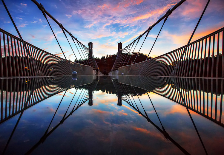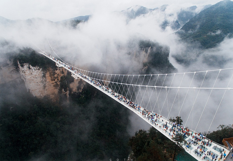 The Zhangjiajie Grand Canyon Scenic Area is located in Cili county, Zhangjiajie, adjacent to the World Natural Heritage Wulingyuan. The tourism resources are a perfect composition of the Grand Canyon (A Strip of Sky) and the Glass Bridge (Glass Sky Walk), demonstrating man and nature in harmony, integration and beauty with the unique combination of towering cliffs, steep mountains and valleys, flying waterfalls, strange caves of the mountains, springs and lakes.