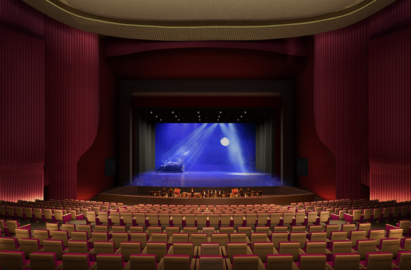 The grand theatre is Beijing's first-ever professional theater for musicals. The wine-red walls and golden champagne ceiling pay homage to the classic Western theater style, yet the design at the entrances of the auditorium, which are of a traditional Chinese style, speak of the combination of East and West design concepts.