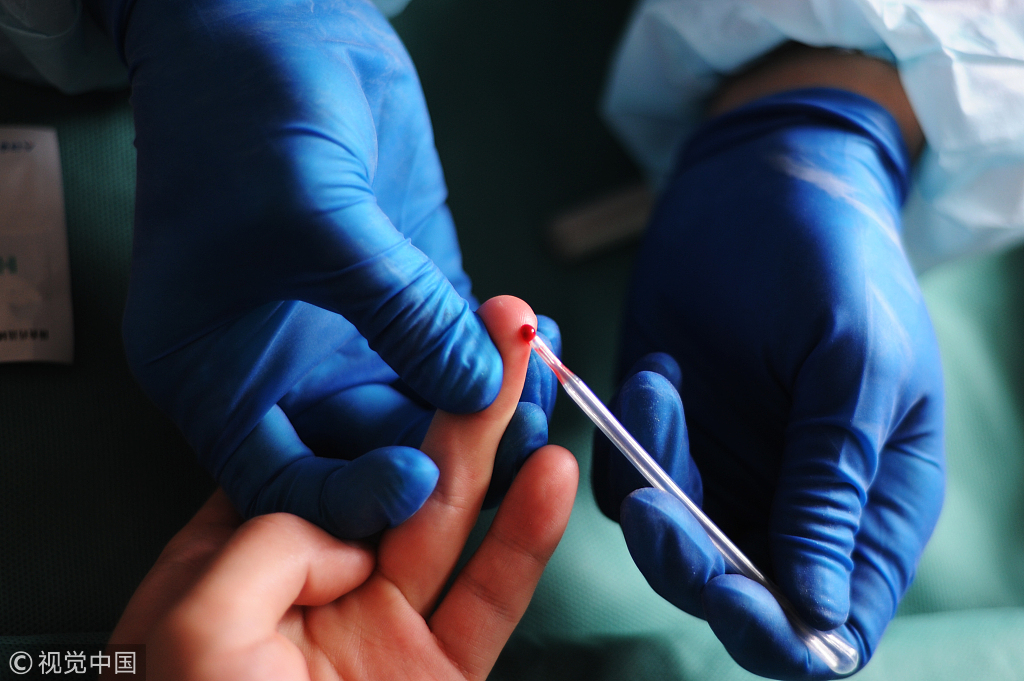 An HIV carrier receives a virus test in Qingdao, Shandong province, Nov 24, 2014. [Photo/VCG]