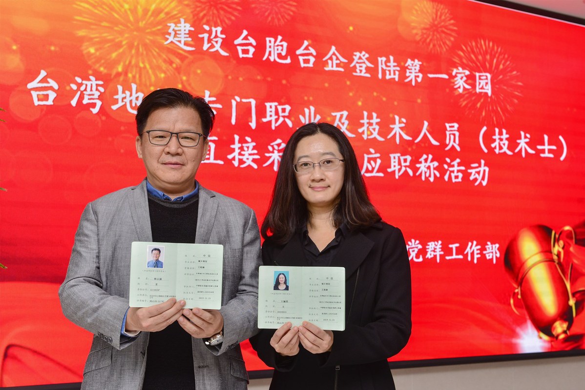This certification, which is equal to her technical title obtained in Taiwan, means she can enjoy the same treatment as the employees of mainland, and could facilitate her to career in mainland, said Wang.
