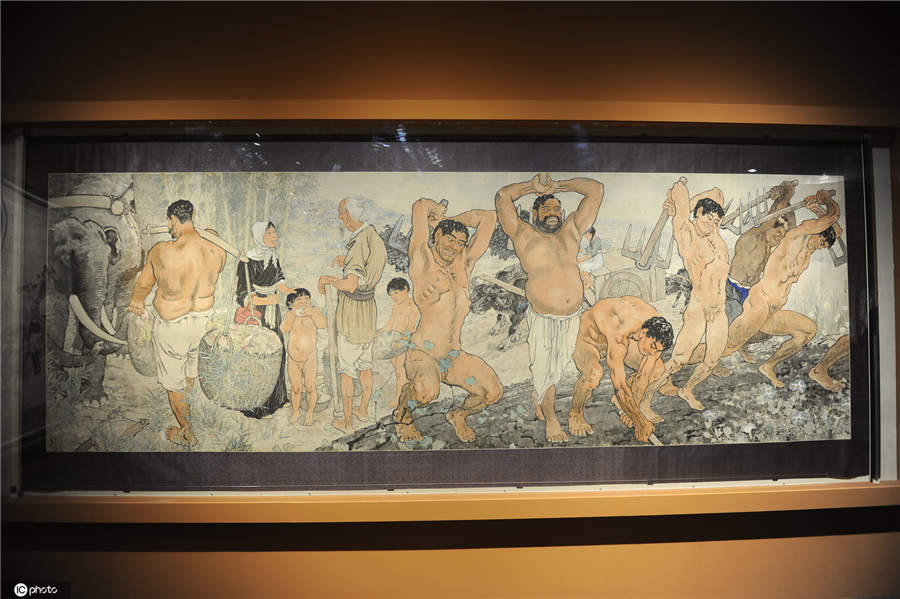 , one of Xu Beihong's masterworks on show, depicts a household name in Chinese parables – a stubborn old man who leads his family to remove a mountain in front of their home. [Photo/IC]