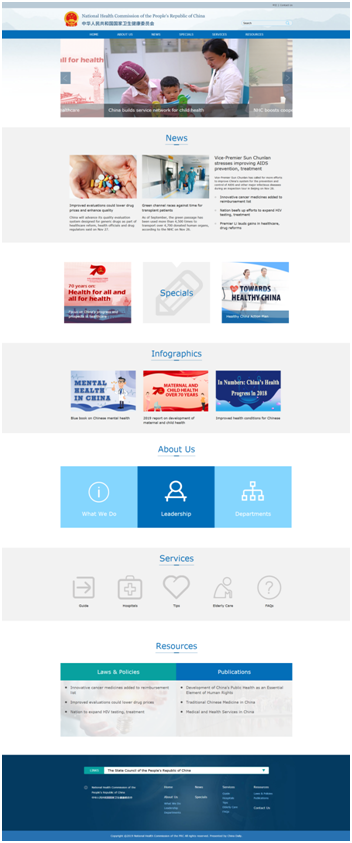 The home page of the newly-launched English-language website offers readers the latest information on China’s health progress.