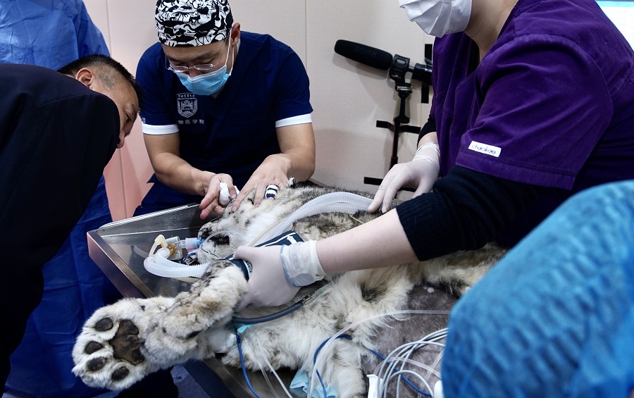 XINING-Linghan is now over 11 years old and nearing the upper reaches of the average life span for wild snow leopards. Weak, fatigued and almost blind when he was rescued, he now has a bright future after successful cataract surgery in Xining, Qinghai province, on Nov 26.