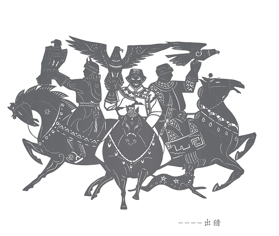 Su makes a vivid presentation of a Daur traditional hunting scene via her scissors and gravers. Just as her work above, Hunting, shows, three hunters ride on the husky horses with eagles sitting on their hands, followed by an agile hound. It is likely that this scene happens in winter for the hunters’ robes and boots seem rather heavy and the hats are trimmed with fur. In ancient times, the scene depicted in the work must have happened constantly, developing the Daur’s fine horseback archery skills, providing them with food and clothes, and nurturing within them a tough character.