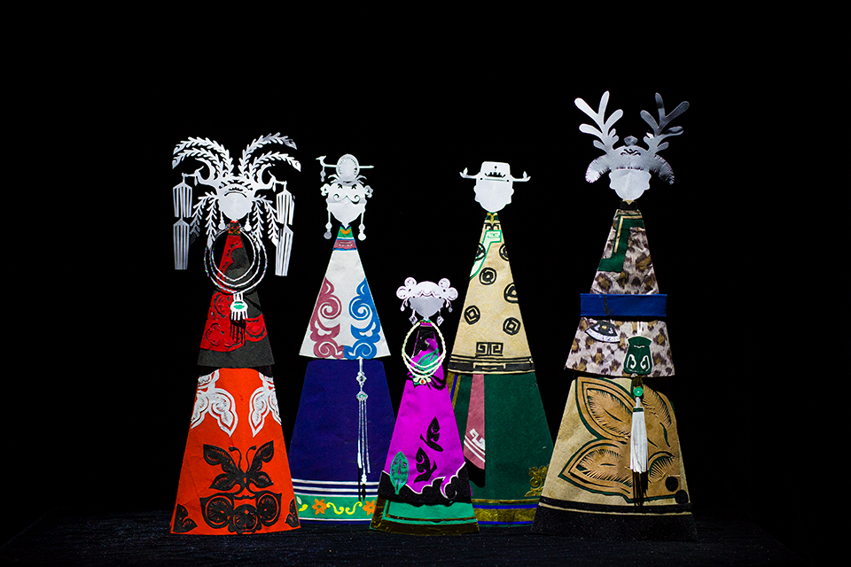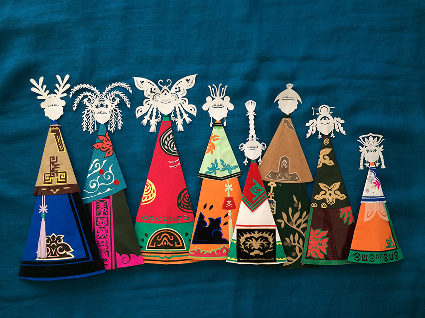 Meaning “pupil” in the Daur language and implying “pocket people in the eyes”, Hanêka are paper dolls measuring between 10-15 centimeters that are beloved by little Daur girls, its birch bark culture and skin-cut craft preceding the introduction of paper. Moreover, it is speculated that the formation of Hanêka is related to Shamanism, the religion Daur adopted at early period, which usually involved having the images of its gods cut out for worship and other rituals.