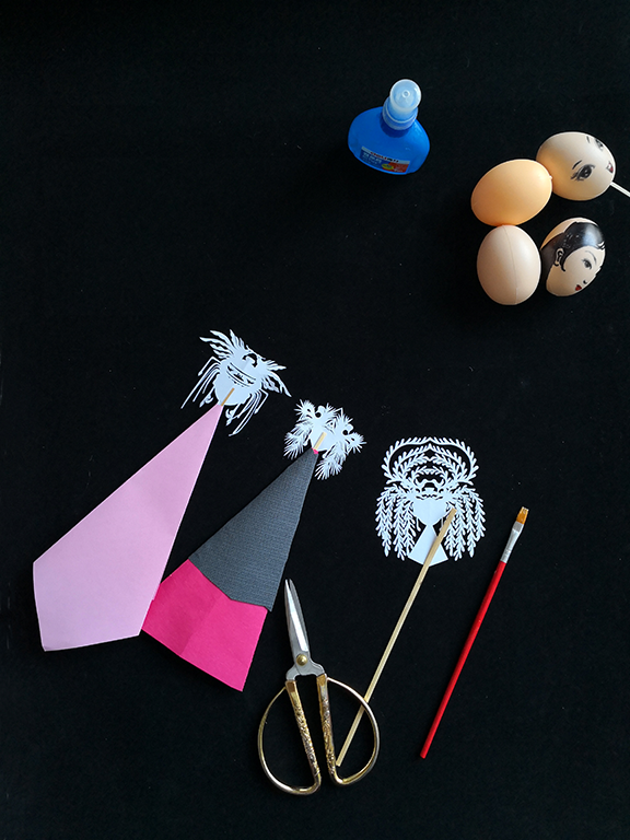 For a traditional way of making Hanêka, all you need is a pair of scissors, a bottle of glue, colored paper and a small thin stick. First of all you fold the paper in half then cut out the head part, including the neck, face, ears and headgear. Next you should fold another piece of paper into a cone and cut out a bit of its top to make the body. After sticking the head on the stick, you can insert it into the body and glue on the decorations you like. Expand the bottom of the body and stand it up and congratulations, you have made your own traditional-style Hanêka.