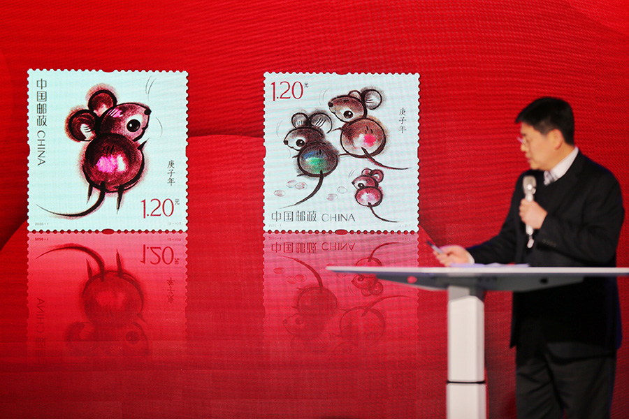 The Year of the Rat stamps, to be officially issued on Jan 5, 2020, are designed by Han Meilin, a prominent artist and designer whose zodiac sign is also rat. The set of two stamps show rats in a signature playful style of Han.