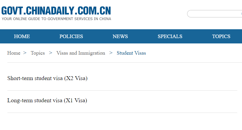 A: Hi. Thank you for your message. Generally, short-term and long-term student visas are provided for overseas students. For more information about student visas in China, please go to: https://www.chinaservicesinfo.com/topics/visas/studentvisas.