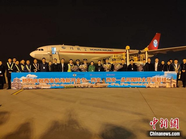 Two all-cargo air routes were launched between Xi'an, capital of Northwest China's Shaanxi province, and India's Chennai and Mumbai on Dec 7.
