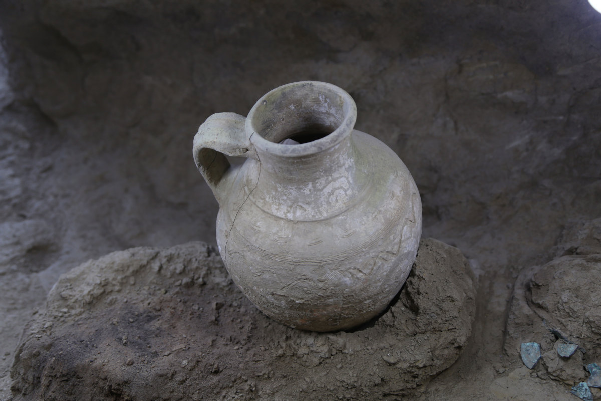 A piece of pottery is among the articles unearthed from the tombs in the Tianshan Mountains in the eastern part of Xinjiang Uygur autonomous region. [Photo provided to chinadaily.com.cn]