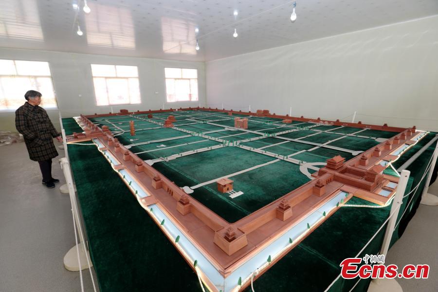 The photo taken on December 11, 2019 shows miniature sculptures of ancient buildings of Xi'an city made by Liang Huaide. Liang, a 80-year-old man from Xi'an, Shaanxi province, spent over 20 years making the 200:1 miniature complex building, which includes the city's landmarks like Giant Wild Goose Pagoda, the Bell Tower and Drum Tower. Made with mortise-tenon joint structures, Liang's work consists of 100,000 parts. [Photo/China News Service]