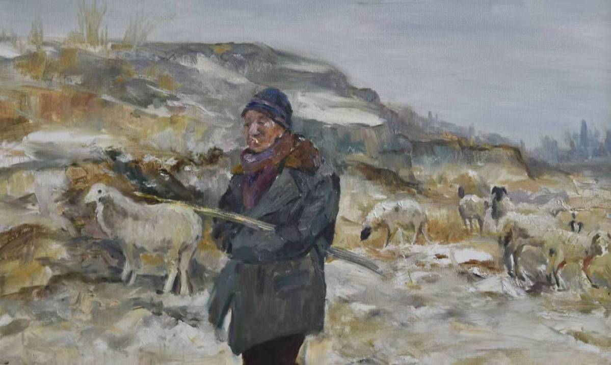 An oil painting created by Xue Fuli, who temporarily works at Nanchuan village in Xiji county in Northwest China's Ningxia Hui autonomous region to help the village rise above poverty and wants to record the scenes he has seen in the village and neighboring regions. [Photo provided to chinadaily.com.cn]