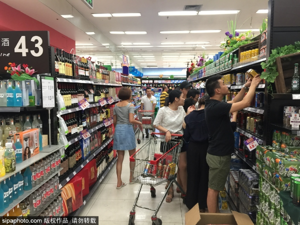 Customers select goods at a BravoYH supermarket in Fuzhou, East China's Fujian province, Aug 20, 2017. [Photo/Sipa]