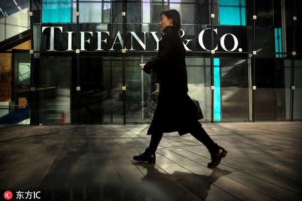 A woman walks past a Tiffany & Co store at a shopping mall. [Photo/IC]