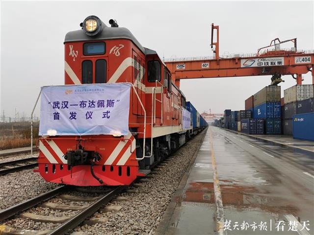 The China-Europe freight train will arrive in Budapest, Hungary in about 20 days, according to Wuhan Asia-Europe Logistics.