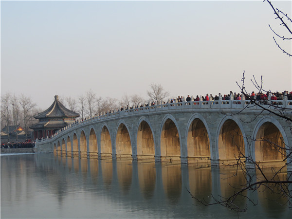 The Seventeen-Arch Bridge in the Summer Palace in Beijing is a tourist spot for its beautiful design. [Photo/Qiu Dazhao]