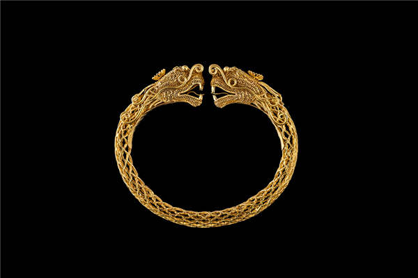 A gold bracelet is among the exhibits. [Photo provided to chinadaily.com.cn]