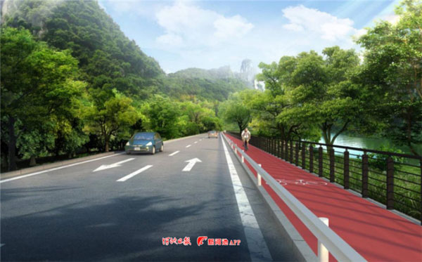 A design sketch of the cycling path in Jinchengjiang district, Hechi, which is set to be completed by the end of December. [Photo/Hechi Daily]