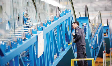 An employee of Otis Elevator Co Ltd assembles an escalator. Elevator and escalator sales have risen rapidly in China alongside urbanization.[Provided to China Daily]