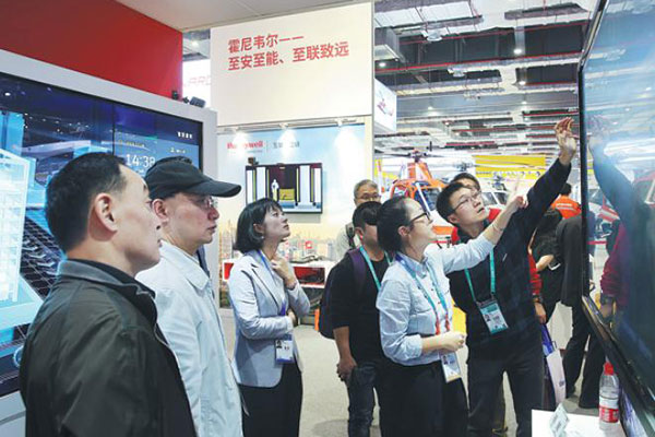 Visitors gather at the stand of Honeywell during the China International Import Expo in Shanghai on Nov 7. [Photo by Feng Yongbin/China Daily]