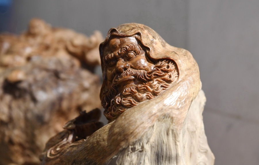 Photo taken on Dec 29, 2019 shows an artwok made of Hainan rosewood in an exhibition in Fuzhou, Southeast China's Fujian province. The exhibition opened at the Fujian Provincial Museum Sunday, with 150 Hainan rosewood collections on display.[Photo/Xinhua]