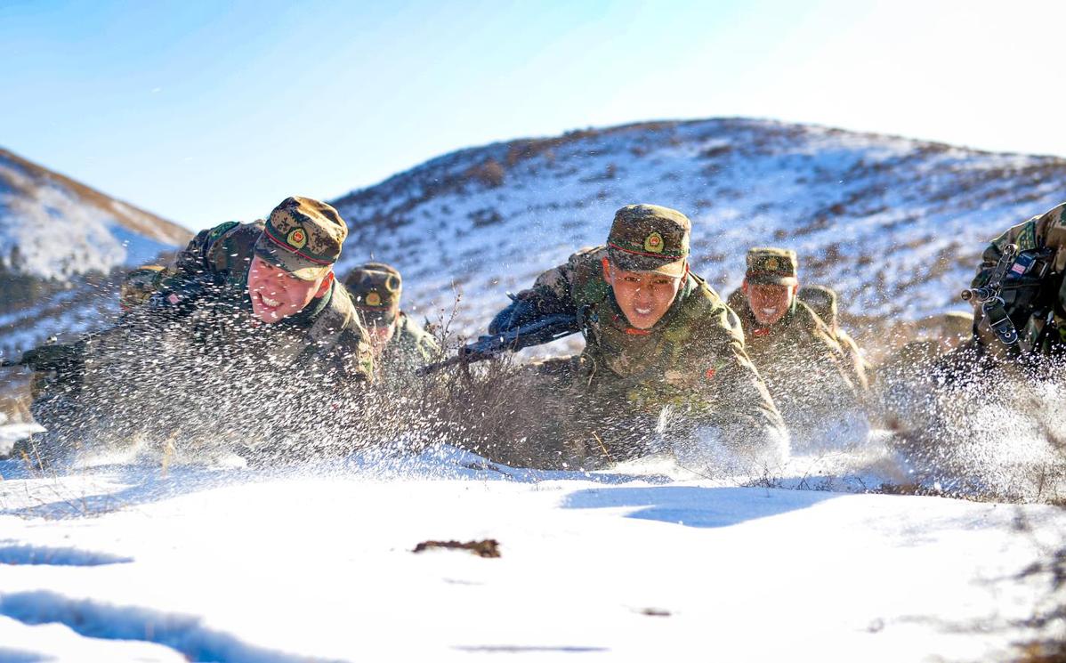 Recruits are training in the cold winter. [Photo by Hou Chonghui for chinadaily.com.cn]