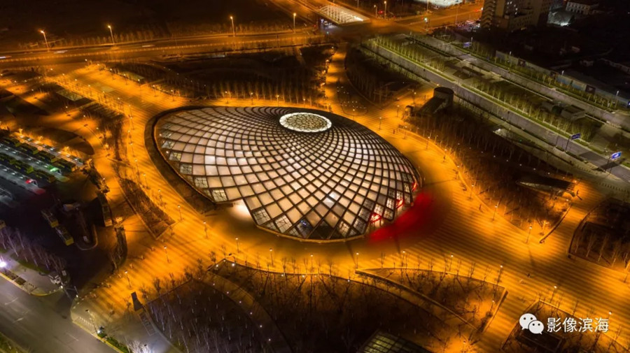 The night view of Binhai high-speed rail station on March 20. [Photo/Binhai Photo]