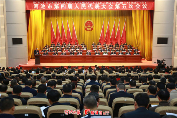 The fifth session of the fourth Hechi Municipal People's Congress is held in Jinchengjiang district of Hechi, Guangxi Zhuang autonomous region on Jan 7. [Photo/Hechi Daily]