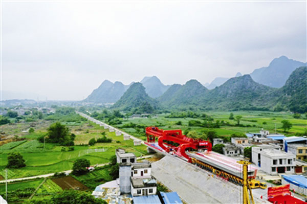 The Hechi section of the Guiyang-Nanning High-speed Railway is under construction. [Photo by Huang Shangbiao/Hechi Daily]