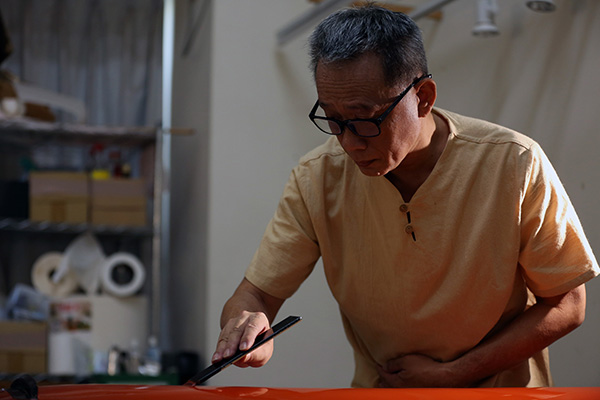 Wang Ten-en, a Taiwan lacquerer, makes traditional musical instruments. They are among 12 artisans featured in the new online documentary.[Photo provided to China Daily]