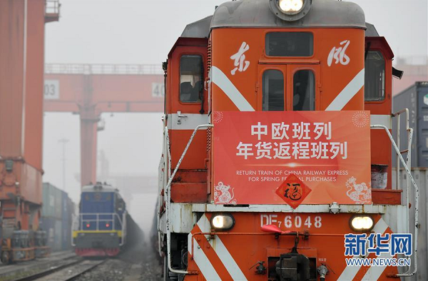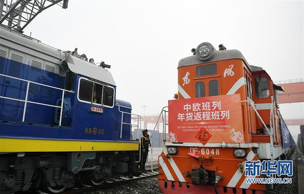 Loaded with flour and edible oil, the X9020 China-Europe Freight Train for Spring Festival purchases arrived at Xinzhu Station in Xi'an International Trade and Logistics (ITL) Park on Jan 16, after a nine day journey from Toshkent, capital of Uzbekistan.