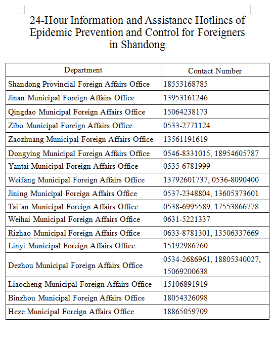 A Letter to All Foreign Friends in Shandong on Epidemic Prevention and Control from the Foreign Affairs Office of Shandong Provincial People's Government