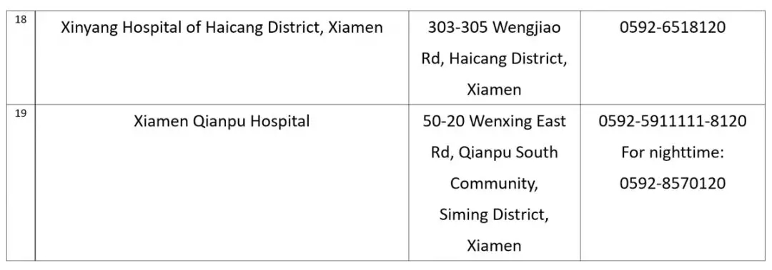 The designated hospital for 2019-nCoV treatment is The First Affiliated Hospital of Xiamen University, Xinglin Branch (Address: 11 Hongdai Rd, Jimei District, Xiamen).