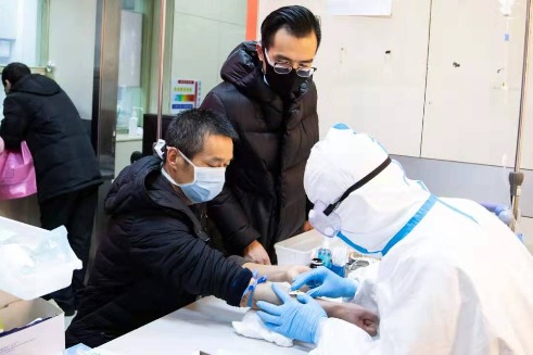 A patient undergoes blood test at Tongji hospital in Wuhan, Central China's Hubei province. [Photo by Tao Jidong/chinadaily.com.cn]