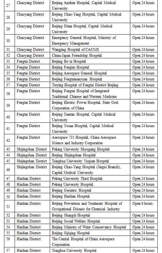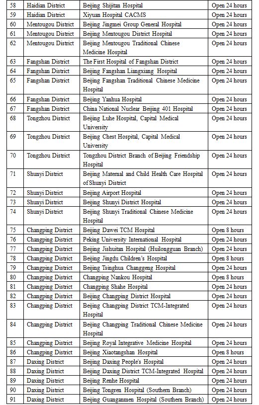 Beijing has designated 101 fever clinics and 20 dedicated pneumonia hospitals at the municipal and district levels (list attached below).