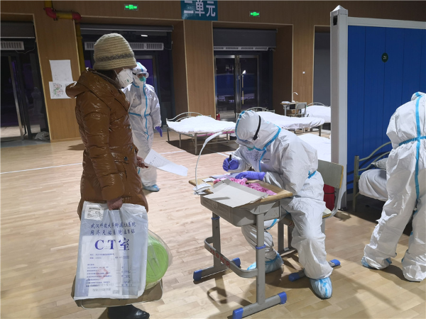 A patient infected with the novel coronavirus registers at the newly opened mobile cabin hospital in Wuhan on Wednesday. [Photo provided to chinadaily.com.cn]