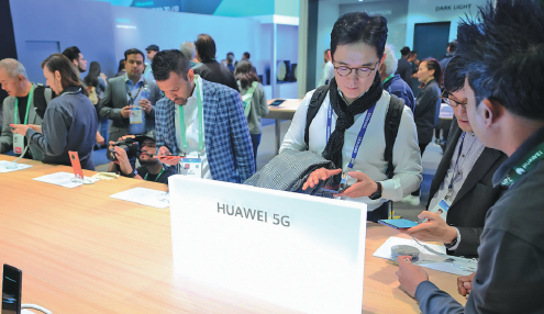 Chinese telecommunications giant Huawei displays its 5G products at the International Consumer Electronics Show in Las Vegas, the United States, in January. The company is among the most prolific patent filers worldwide. WU XIAOLING/XINHUA
