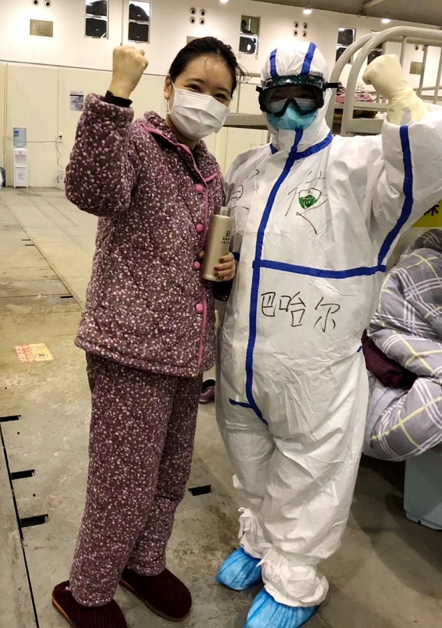 The medical team from Xinjiang is responsible for 189 patients at the temporary hospital. Bahargul noticed that many patients were very anxious and she wanted to do something to ease their tension.