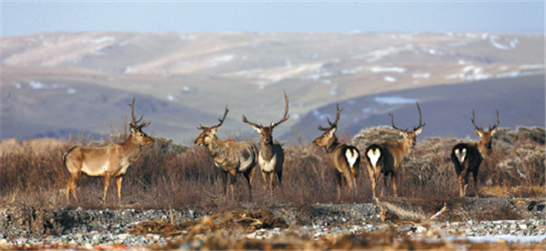 Red deer are endemic to the Qinghai-Tibet Plateau. [Photo by Bao Yongqing/provided to China Daily]
